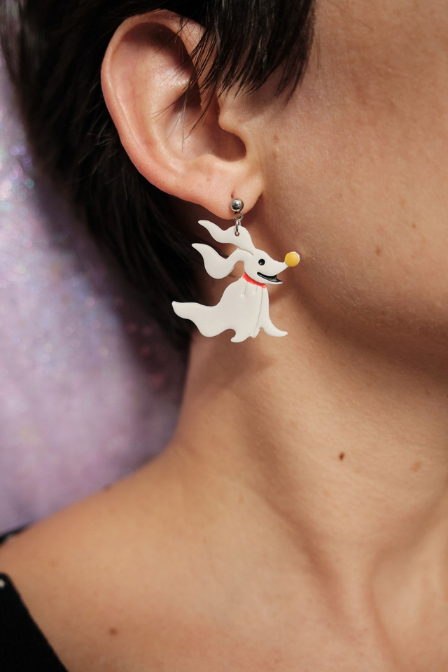 Pendientes del lindísimo Zero, de Pesadilla antes de Navidad, de la Colección Halloween.♥ Para amantes de Pesadilla antes de Navidad✶