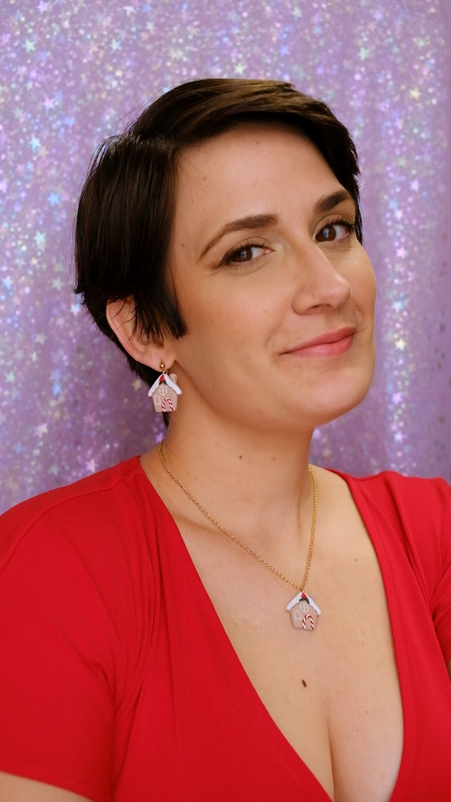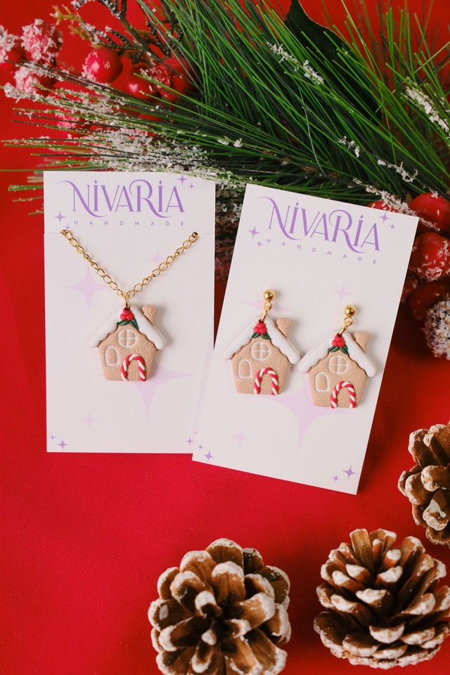Set de pendientes y collar de casitas de jengibre, de la Colección Navidad.♥