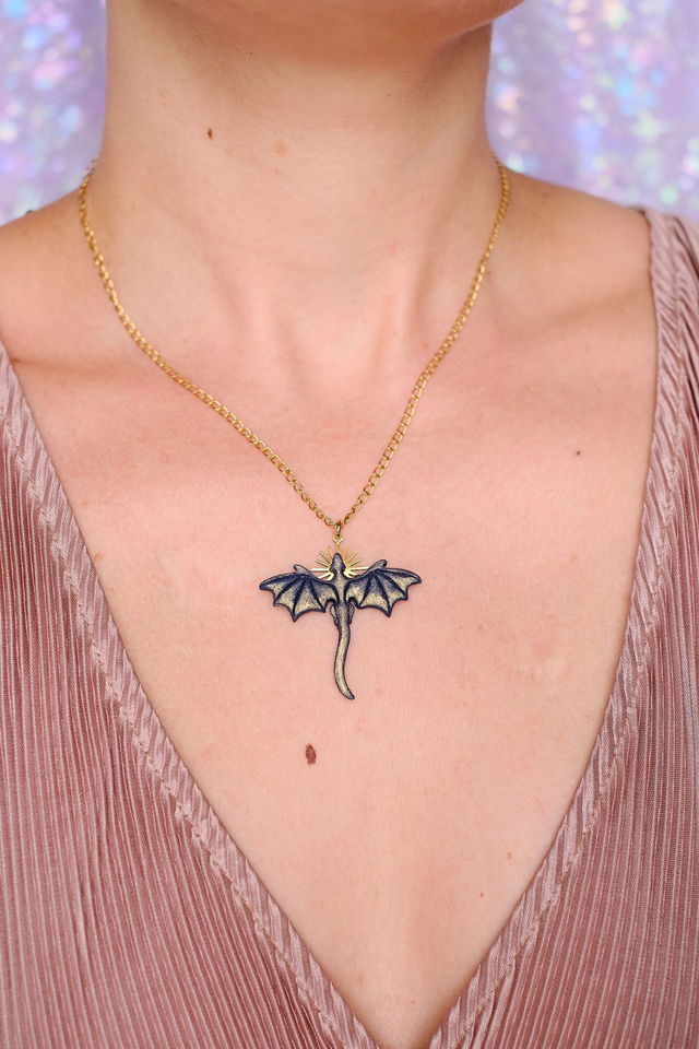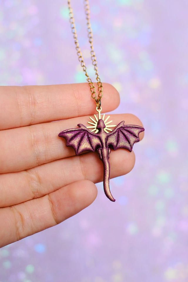 Dragon necklace with sun charm. The perfect gift for fantasy book lovers !♥