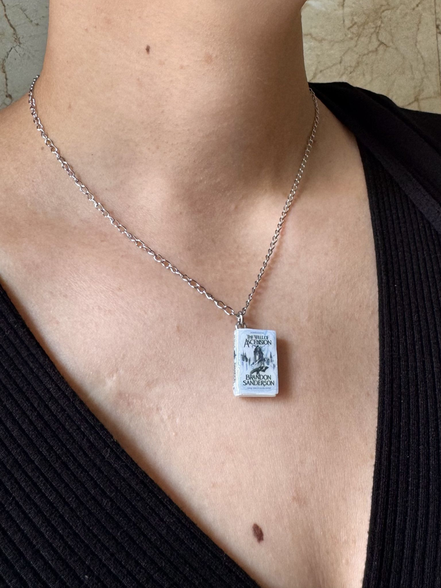 The books measure approximately 2 cm/0.78in and the chains are 42cm/16.5in long in total.