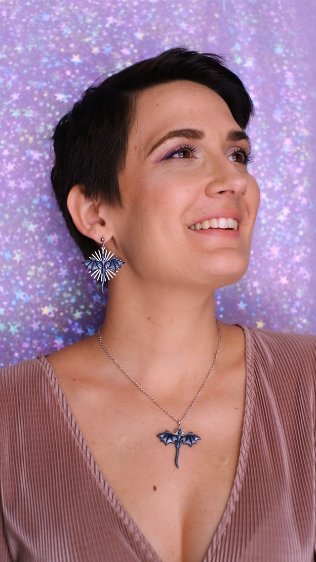Dragon earrings with sun, star and moon charms. The perfect gift for fantasy book lovers !♥