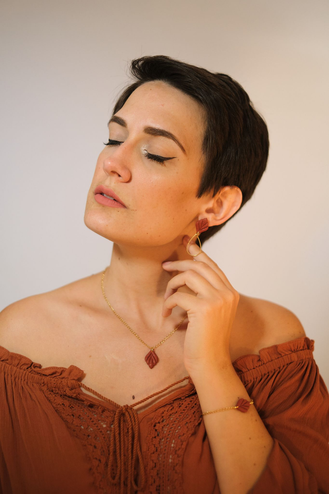 Hechos delicadamente a mano con arcilla polimérica. Las partes doradas son ensambladas a mano con acero inoxidable bañado.