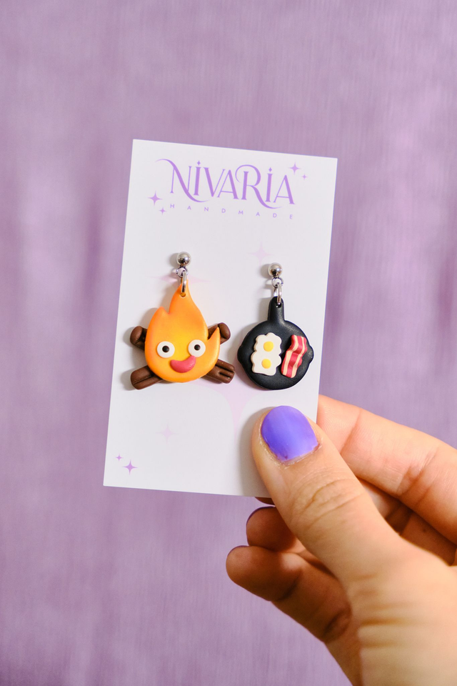 The super cute Calcifer earrings from the Studio Ghibli movie Howl's Moving Castle