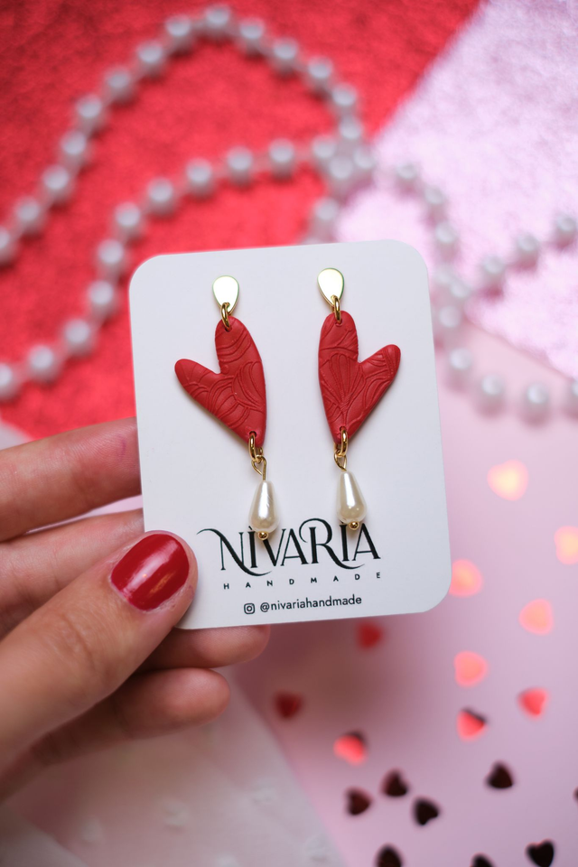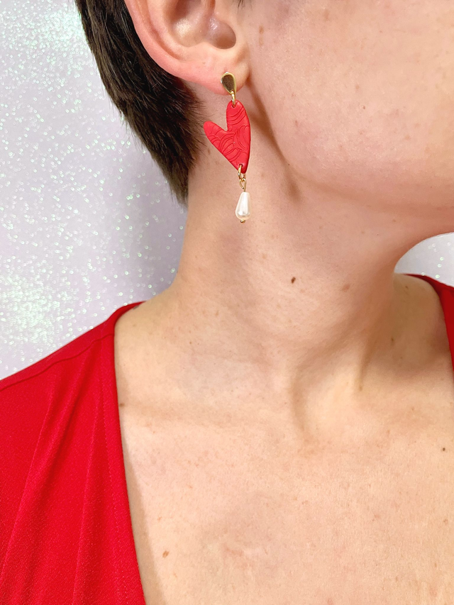 Pendientes de corazones rojos con perla, ¡para llevar un look súper romántico!