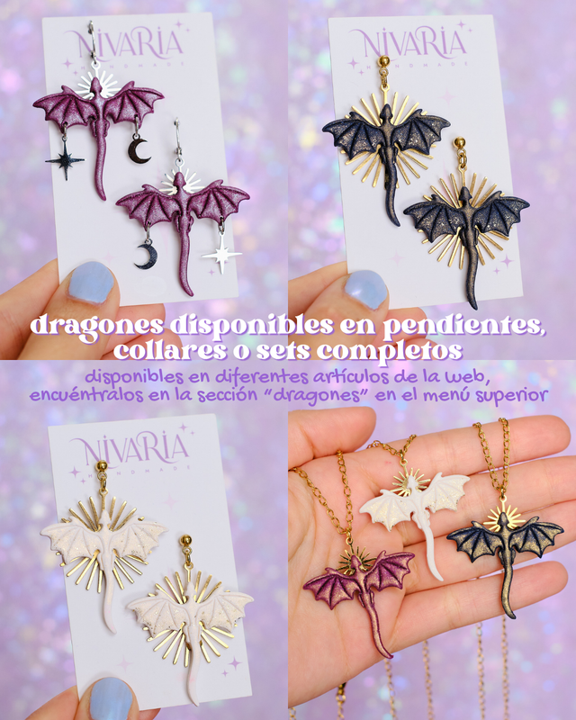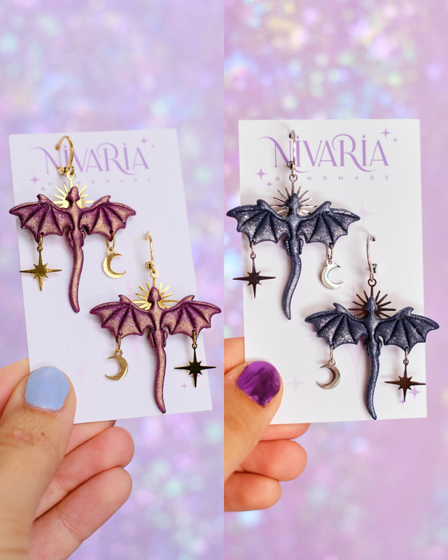 Pendientes de dragones con charms de sol, estrellas y lunas. El regalo perfecto para los amantes de la lectura y la fantasía .♥