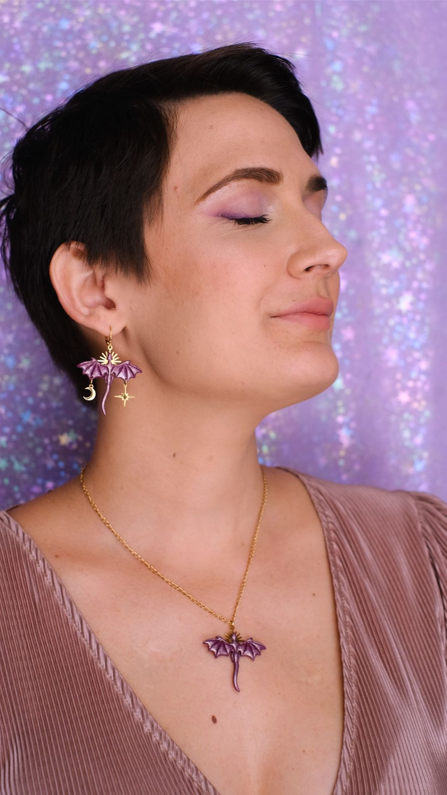 Dragon earrings with sun, star and moon charms. The perfect gift for fantasy book lovers!♥