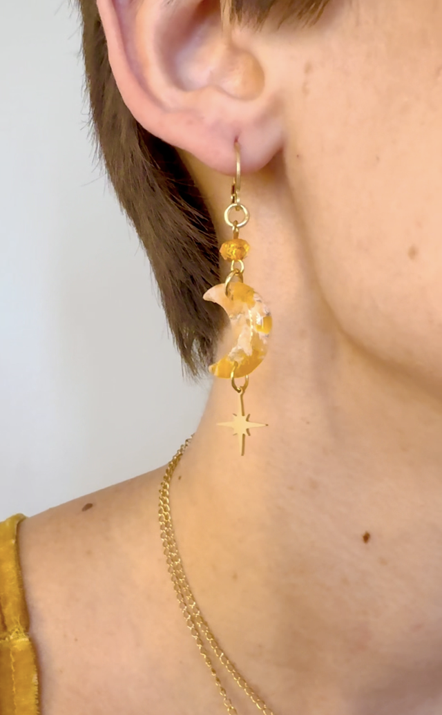 Moon and stars earrings in marble orange effect.