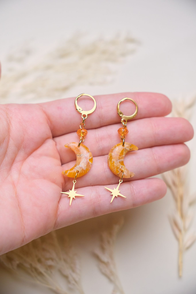 Pendientes de luna y estrellas en efecto mármol naranja.