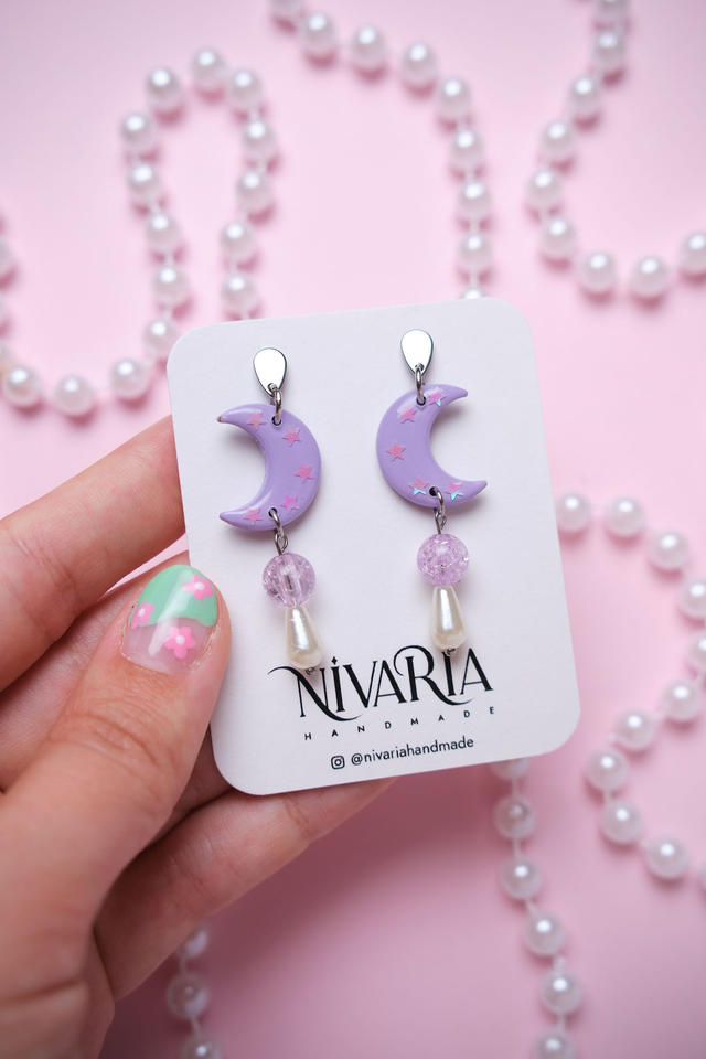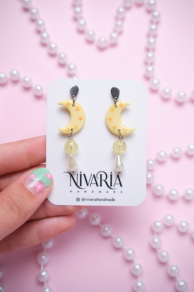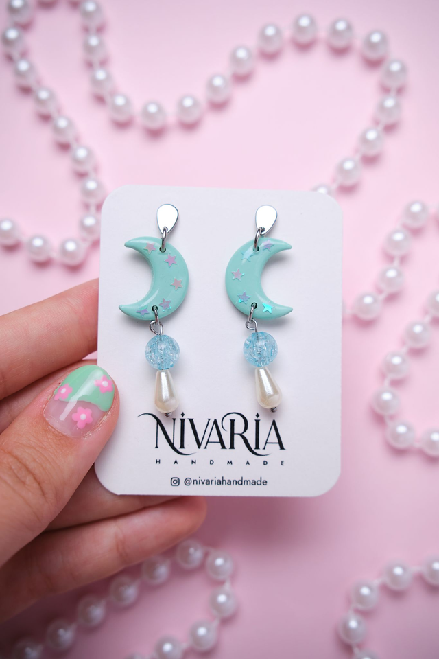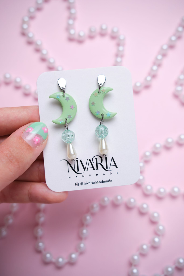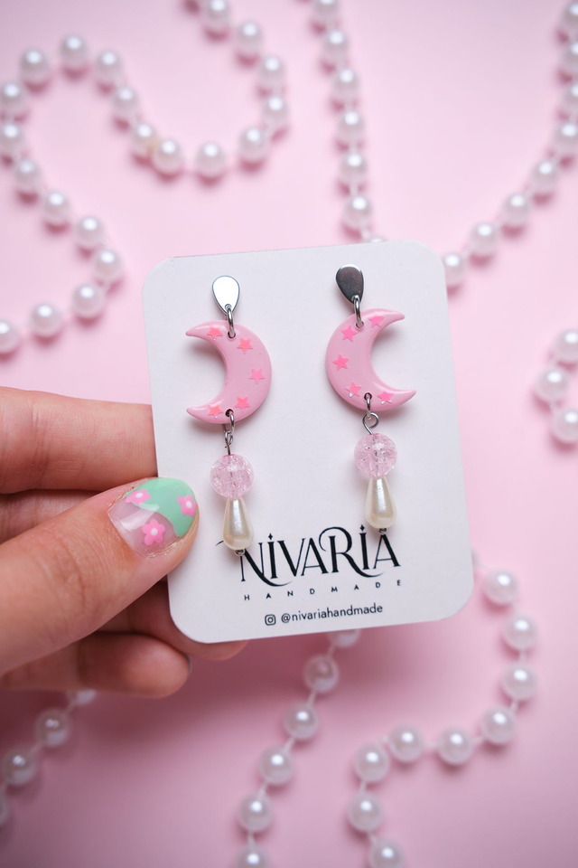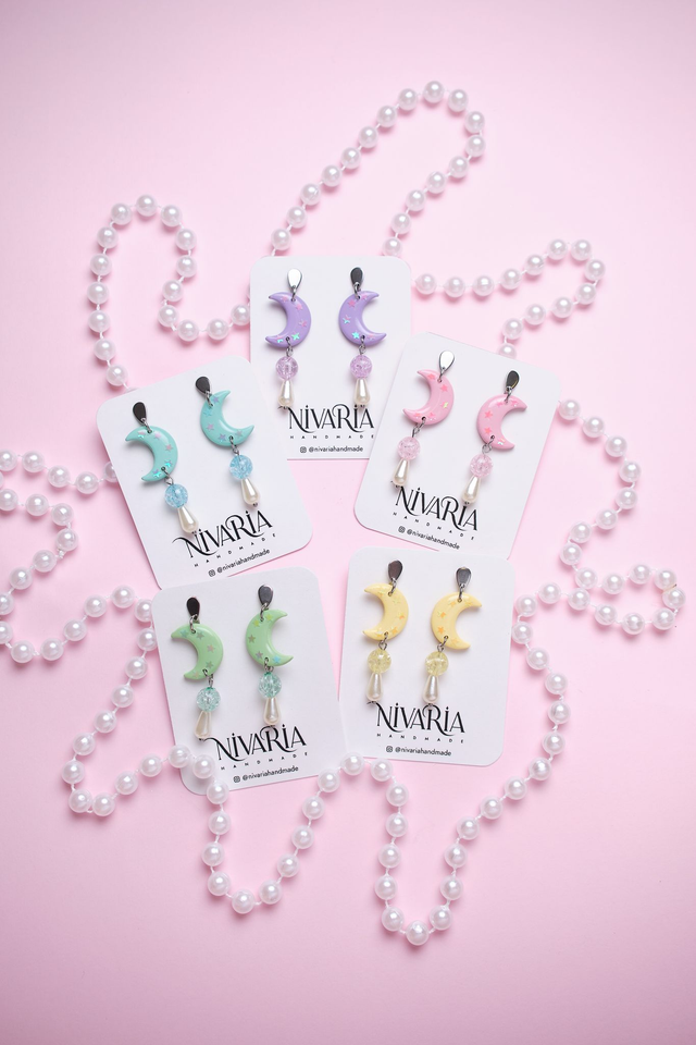Pendientes de lunas pastel, con estrellas y perlas artificiales.