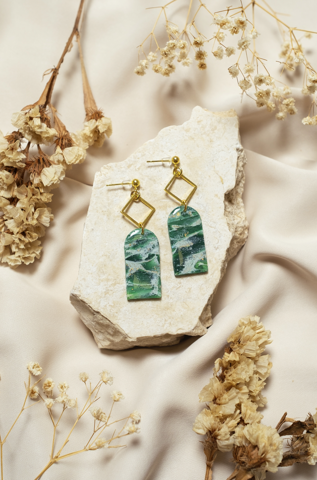 Green marble effect earrings.
