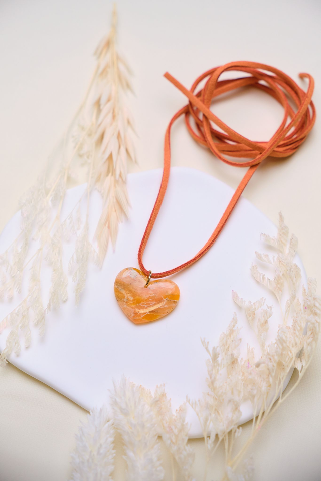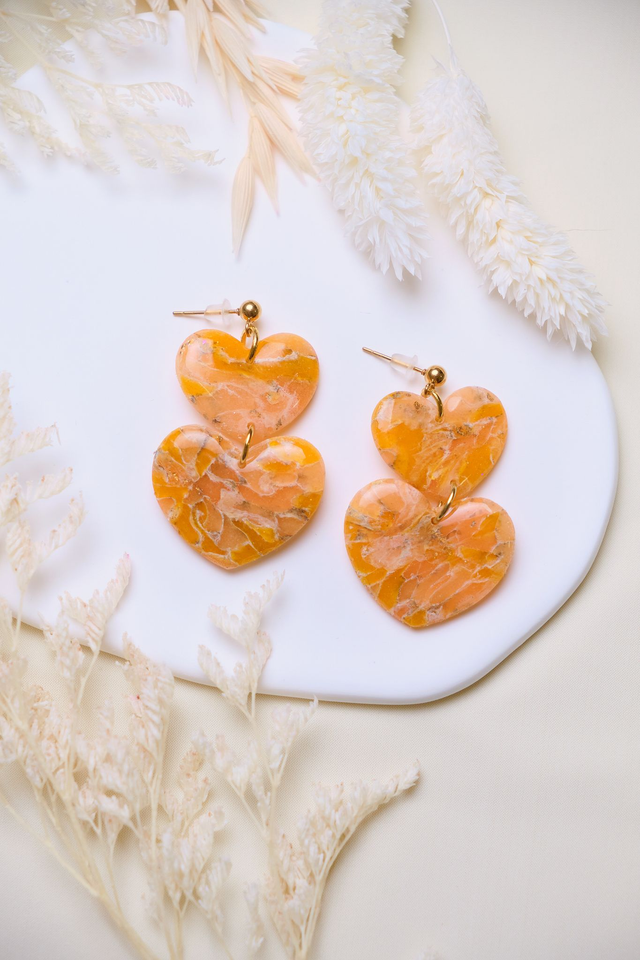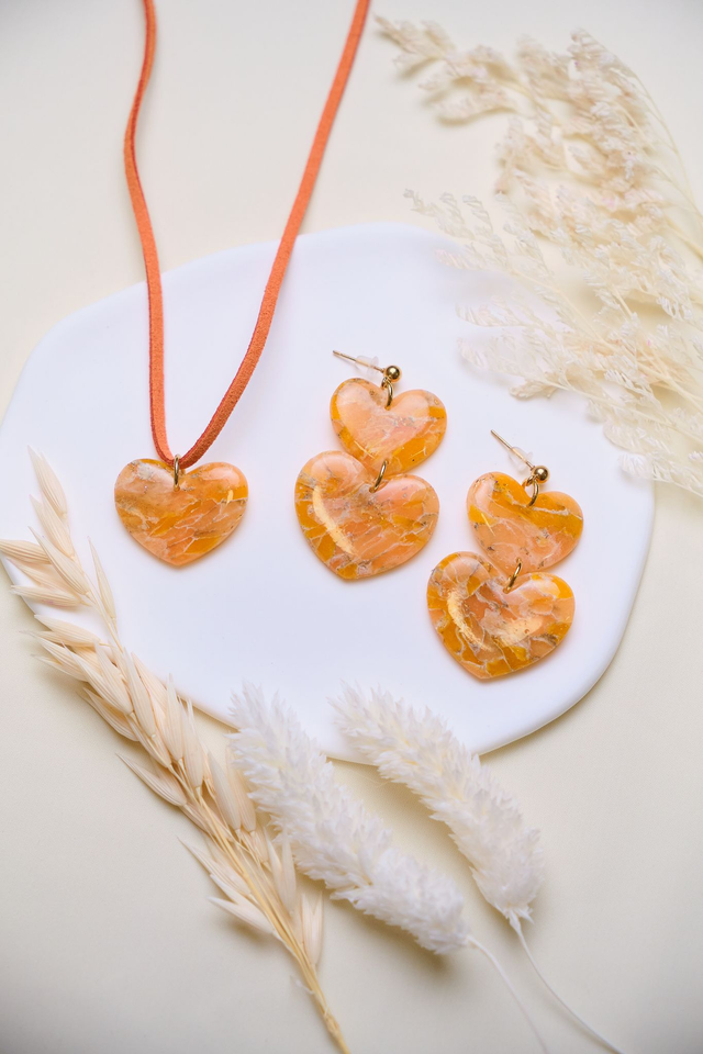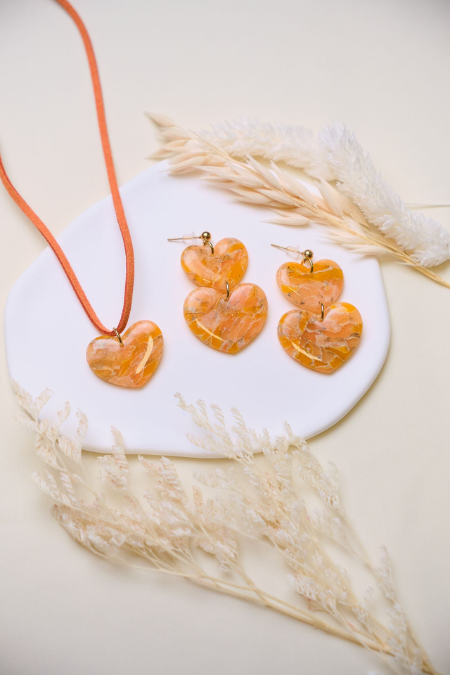 Orange hearts jewelry set in marble effect.
