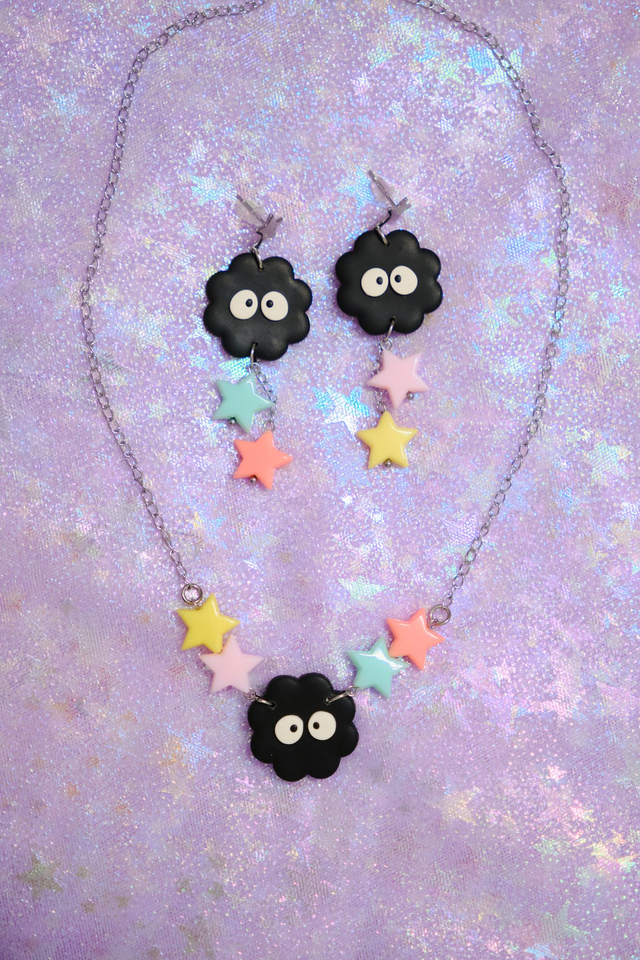 Susuwatari earrings and necklace jewelry set from Spirited Away and My Neighbor Totoro ♥