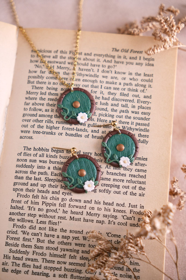 LOTR Hobbit door earrings and necklace. The perfect gift for fantasy book lovers and Lord of the Rings fans !