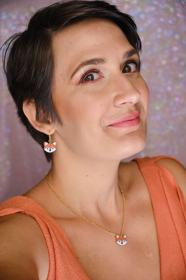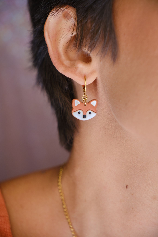 Hechos delicadamente a mano con arcilla polimérica y pintados a mano. Montados a mano con partes doradas de acero inoxidable bañado en oro.